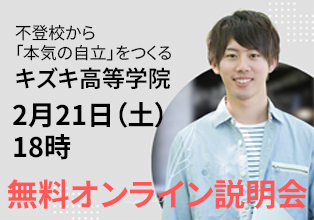 2月21日(土)18時から、キズキ高等学院の理念・特徴・具体的なサポート内容をお伝えする無料のオンライン説明会を開催します。